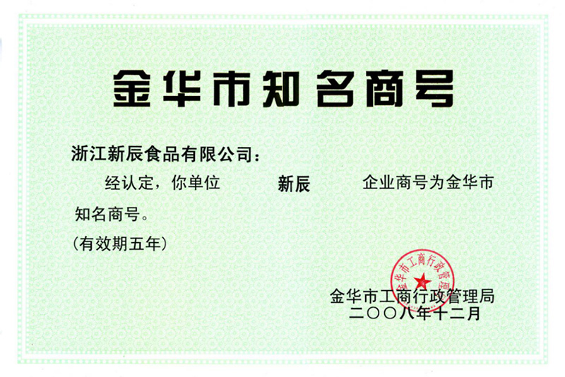 被評為2017年度“金華市誠信企業”,“區重點骨干工業企業”,“浙江省級骨干農業龍頭企業”